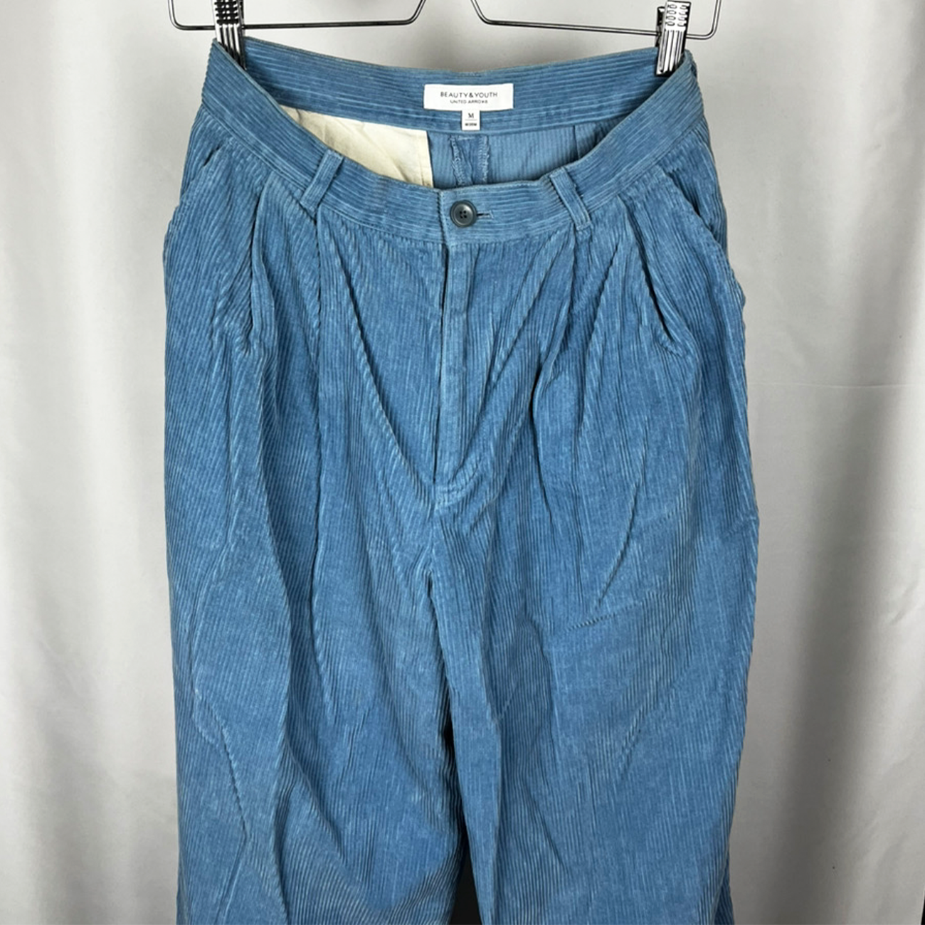 コーデュロイ素材で優しいブルー